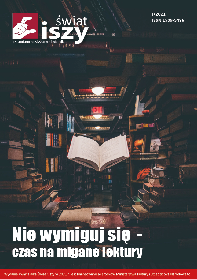 Po ponad rocznej przerwie z przyjemnością oddajemy w Wasze ręce nowy numer Świata Ciszy. Wydany został dzięki dofinansowaniu ze środków Ministerstwa Kultury i Dziedzictwa Narodowego w ramach Programu Promocja Literatury i Czytelnictwa Priorytetu – Czasopisma. W ramach otrzymanej dotacji powstanie 12 numerów, które ukazywać się będą do końca 2022 roku. Wszystkie artykuły dostępne w wersji papierowej będą również tłumaczone na polski język migowy.